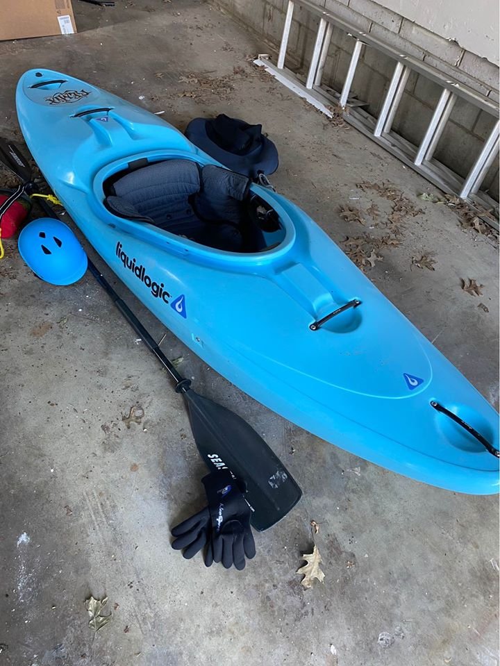 I am including a small whitewater helmet, gloves, booties, paddle, throw rope and shockwave skirt.