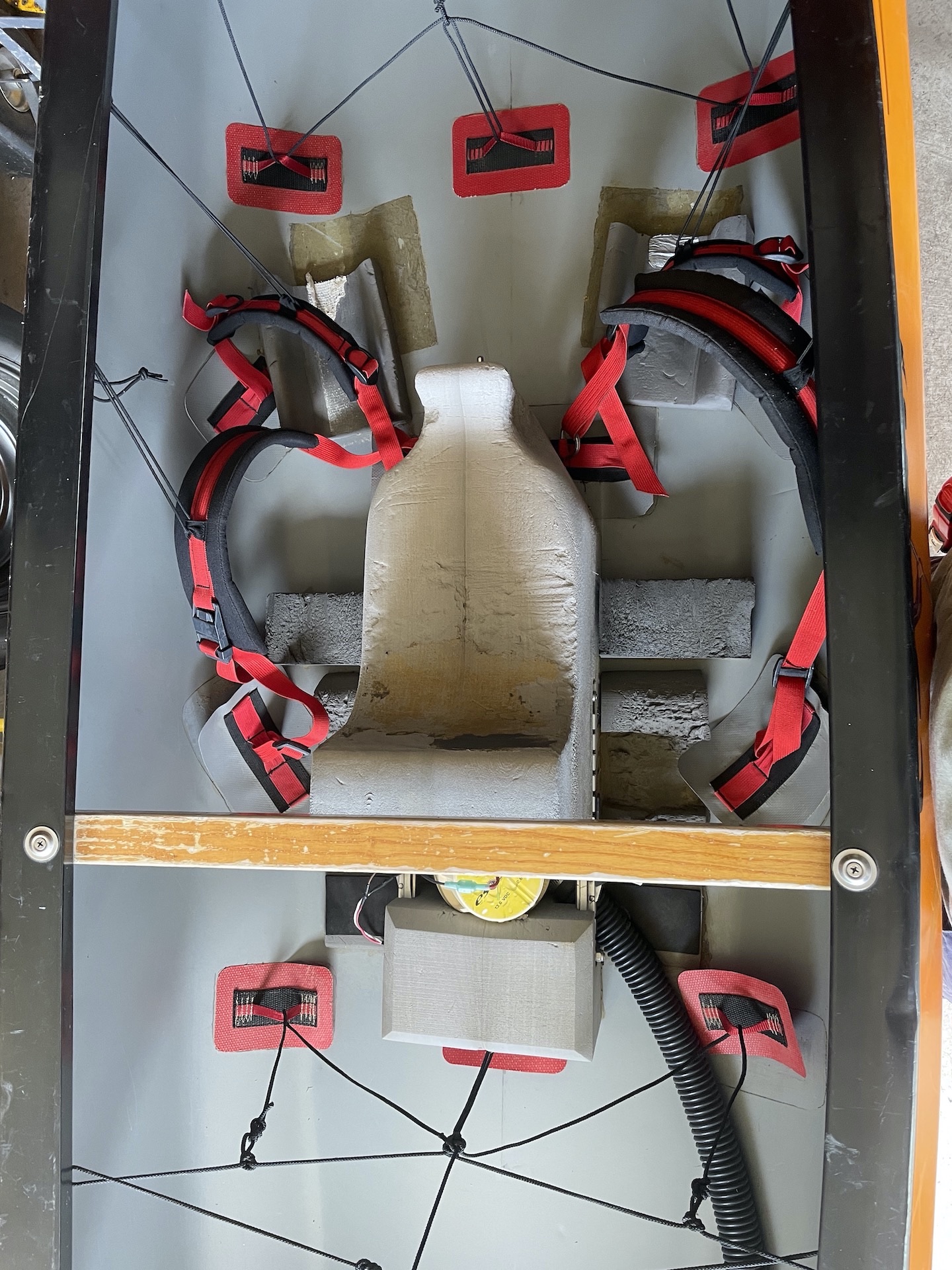Used Nitro with bilge pump, airbags, and brand new battery. Stored inside. Wear in all the usual places. Thigh-strap and bag cage outfitting needs re-attached in places and I have a brand new 8oz g-flex epoxy I’ll throw in for such endeavors if desired.