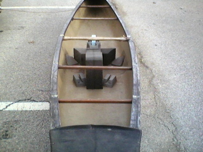 learn sumpin everyday,thanks for holdin... thing weighs about 45 - 50 lbs., easy to handle.Air bags aren't custom and are older than the canoe..I'de say.