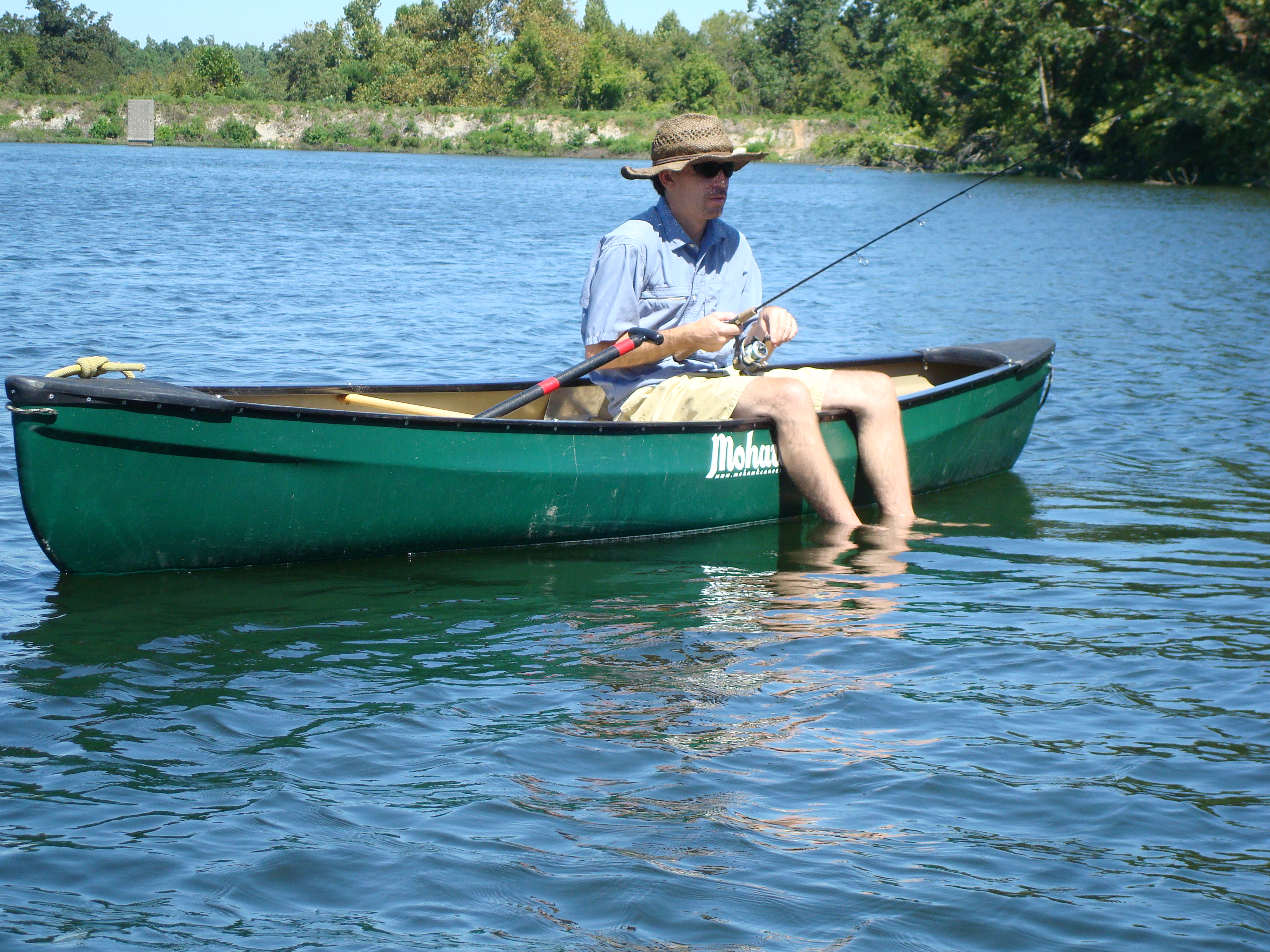 Wow Randy! Your buddy is getting some great suggestions. However, I'm going to give yet another one. Have him take a look at Mohawk's Odyssey 14 & 15. The Odyssey's are especially popular in our neck of the woods. They handle well on lakes and ponds and they shine on class I-II local rivers. Even with a center width of only 29" it still has plenty of stability while allowing for more speed and agility over boats that are wider and longer. Below is a photo I took at Lake Wedington that demonstrates the stability of the Odyssey 14. I have both models waiting for you and your buddy to demo them and tell me what you think for yourself. Drop me an email at dthomas@mohawkcanoes to set up a day and time.