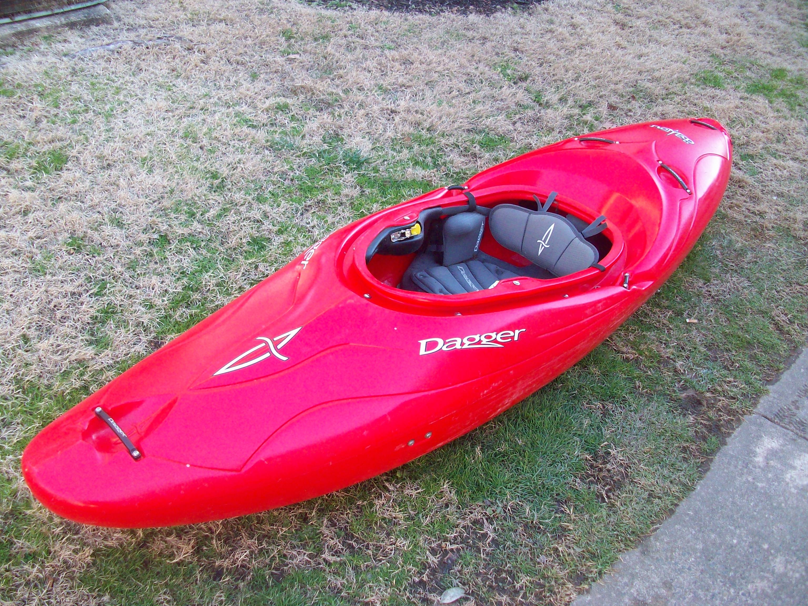 I hate to see it go, but I need the money and haven't gotten to paddle for quite some time. I have two Daggers: a Nomad 8.5 and an Agent 6.4. Both have normal river wear. I'm also selling my Werner Sherpa paddle, Harmony Langer sprayskirt, NRS Flux drytop,Stohlquist PFD, Shred Ready helmet, and i'll throw in the hand paddles to whoever buys the playboat.