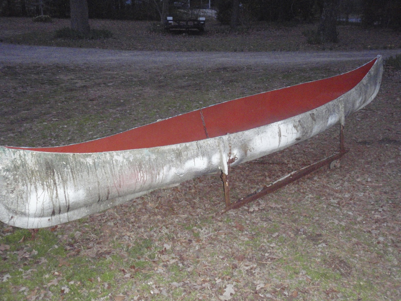 I scored this from a farmer next door that had been using it as a feed trough. It's two piece, bolt together, 16 feet long, and is on casters...there are no identifiable markings. I know it's been in his field for at least 20 years. The outside has a good amount of splashed resin, with the inside perfectly clean. Obviously it was for fiberglass canoes, maybe vacuum forming??? Any ideas on how old, what company may have used it, and most of all......can we use it again?!?!