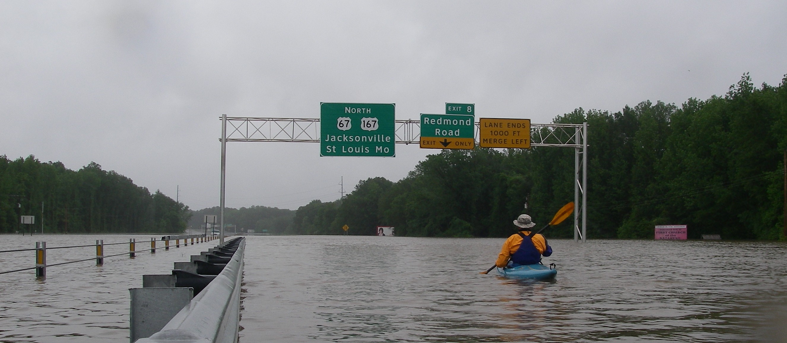 If I hadn't personally seen all this rain fall and seen the flooding firsthand, I'd say that was photoshopped. I love it, urban kayaking at it's finest!