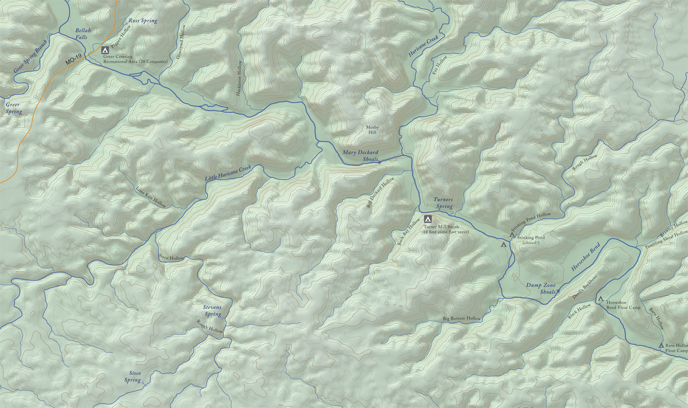 and the second half. Camps streams and bluffs are accurate, I didn't show the side roads as I didn't have time to collect the data.