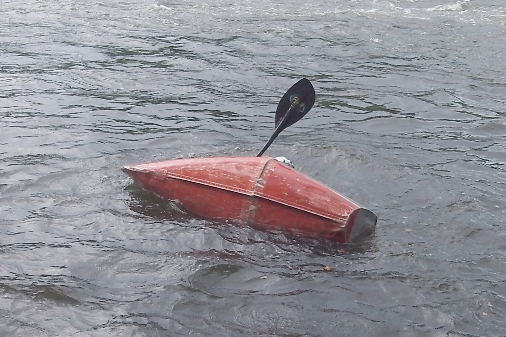 I once outfitted it with Wal Mart oars and rowed it from Remmel down to the ledge; but generally it only comes out to play as a C-1. It has also been used for surfing, with partial success. But this past weekend was the first time I'd ever tried it "Chicago bob" style (double blade), that actually worked out pretty good.
