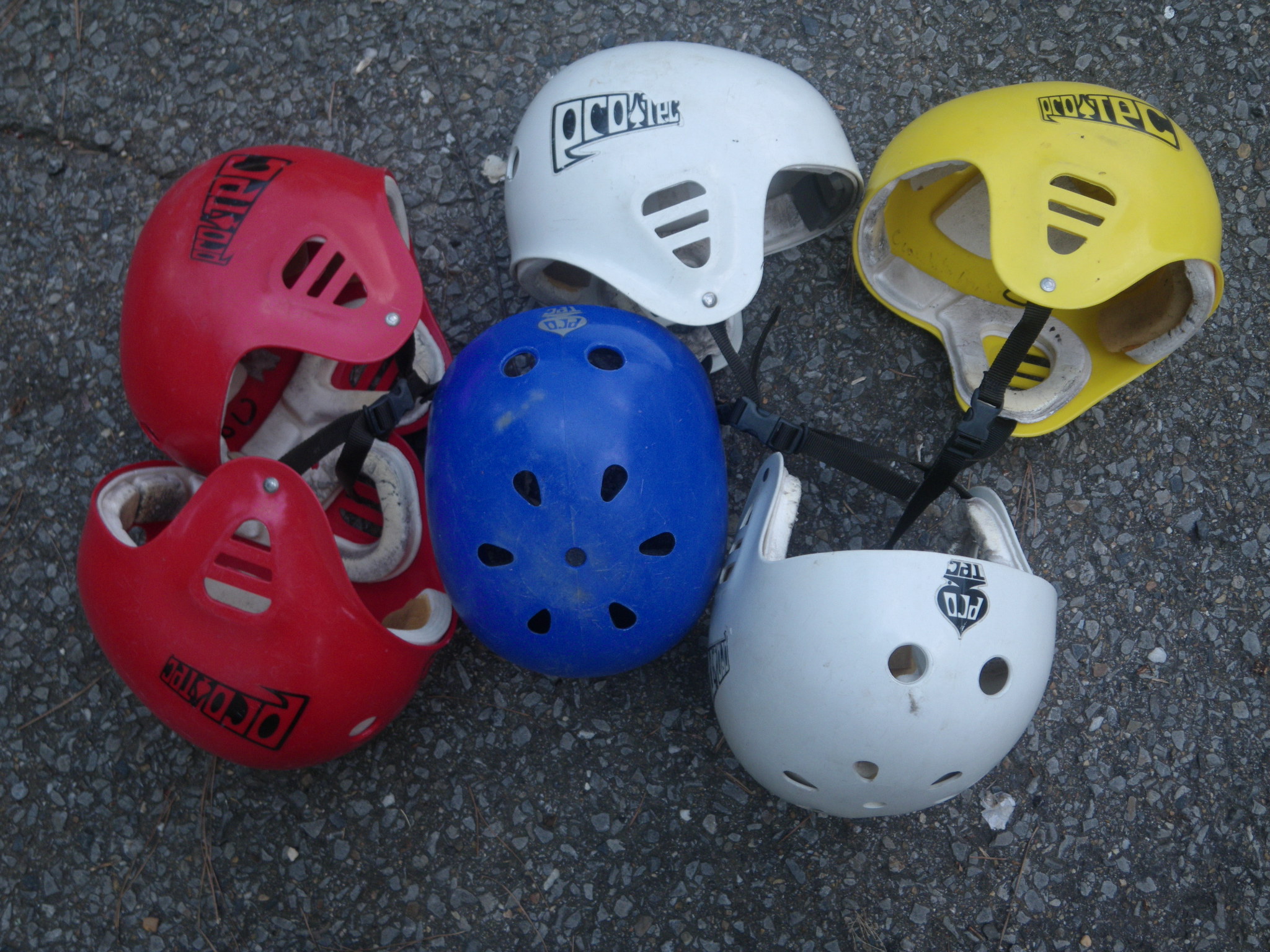 Six Pro Tec helmets: 2 small, 2 med, 2 large. $10 each 1 large is sold.