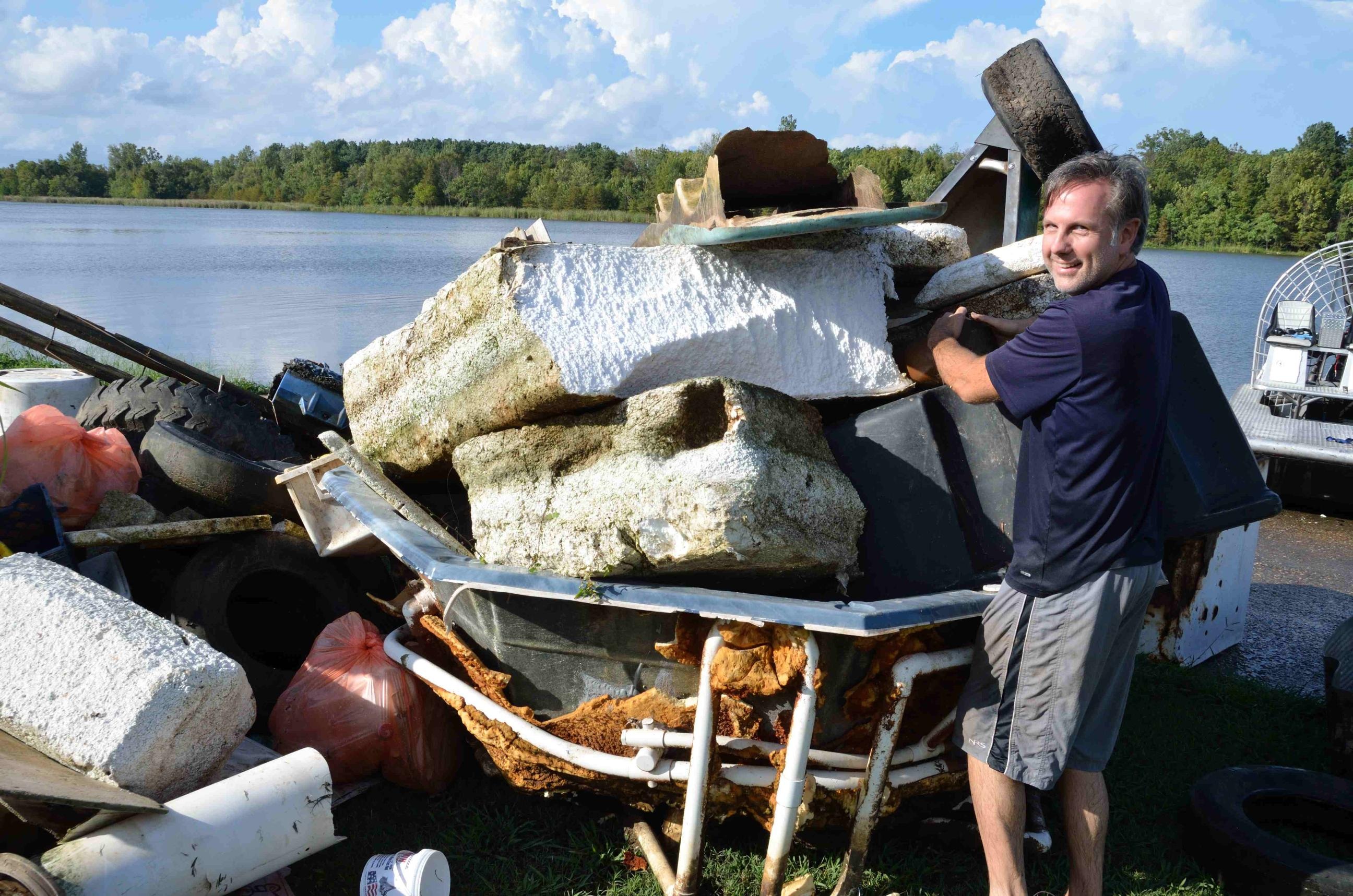 Well, we had a blast today! And made quite a haul. Participants included Bryan Hughbanks (chief organizer; he has been scouting the locations of major targets, brought the airboat, and alerted me to this clean up), Dana T, Debbie D, Crash, and Deuce (Luke), who also brought his party barge.