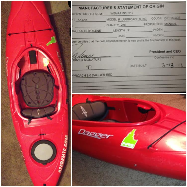 Have a 2012 Dagger Approach 9.0 for sale as well as a Bob Shelter Spray skirt to fit it. This is an excellent start up kayak for anyone looking to get into recreational kayaking. The boat was bought new on Easter weekend of 2013 and has had minimal use so the boat and skirt price I am asking $350 (negotiable). I also have an NRS Ninja Type III PFD (life jacket) I am asking $70 for and an NRS Livery Helmet that I am asking $20 for. If anyone is interested in all the gear my price would be $400 and anyone seeking the individual gear can contact me through this post or e-mail me at robert.jones@smail.astate.edu. Thanks guys and gals!