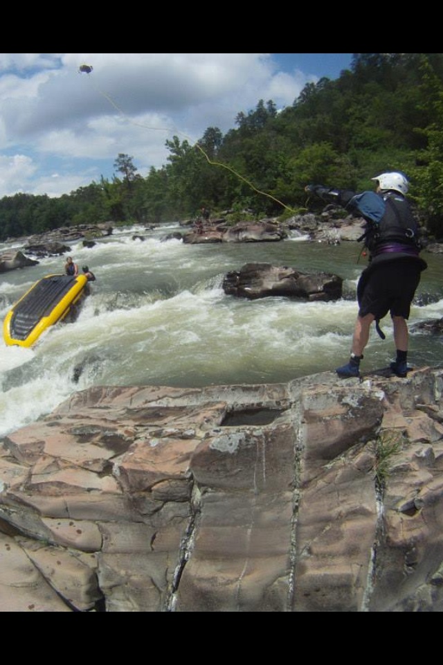 We decided to roll the dice Saturday afternoon and head down to the Sandbar bridge and camp.We awoke to what looked like a pleasantly surprising good level? About 6 inches under the bridge in the A.M.? Got to Ed Banks around 11 to see familiar faces and several new ones as well, a shuttle run and we were off! Goob Crew looked good through Zig Zag and the Esses and with each rapid seemed to build momentum and confidence. We finally made it to the Falls and after a less than thorough scout I ran down to the bottom of the Machine and climbed up the large rock to set up for the popular photo op. I watched them in the distance run down the first drop and then take a lesser explored line to the far left of Eye Opener? One side hung up and then spun the raft sideways as it went over the ledge and instantly as the raft dropped over it the other side went vertical and the 13fter with 4 occupants flipped like it was nothing. I scrambled towards my boat to grab my rope and happened to see Cowper, Harlan and a few others im not familiar with in the eddy below the Machine. I yelled out Swimmers!!! Without any hesitation they all kicked into gear and took up their spots that could not have been choreographed any better.Harlan went upstream and single handedly drug 3 of my friends to safety that were less than comfortable perched on a half submerged rock directlty above the Machine that held 3 people and an upside down raft.Cowper attached a biner to the throw rope and tossed it perfectly and instructed to attach it to the raft so we could try and swing it into the eddy.Within no time Harlan, Cowper, and several others had rescued 3 stranded swimmers, a raft, and all the yardsale gear from the wipeout. My rope was not long enough to accomplish what was needed and my position on the water isolated rock was less than ideal for anyone or anything. Absolute Kudos and thanks to everyone involed in this recovery,you all showed true selflessness and impressive skill where alone I could have only failed. We all agreed that we owe you much more than the lousy beers and thank yous. To everyone involed we thank you for your time,effort, and kindness(you even tried to help clothe a certain confused individual). I saw nothing but camaraderie and a lot of folks helping one a other. Thank you again everyone involved and if youre ever in NWA give us the chance to reciprocate the favor.I will try and post the GoPro pics Asap.