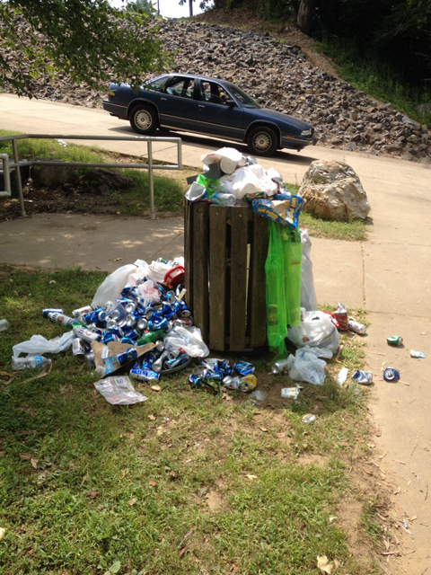 Down at the WW park, take-out, your pictures show what it looks like many weekends there. Sometimes, like with this longer weekend, it is certainly worse. Also worse when groups reserving the pavilion for birthdays, weddings, etc., etc., don't do their part and haul their trash on home instead of overburdening the already slim resources there.
