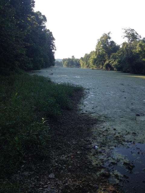 I took the attached photo of the upstream end of Lake Bella Vista last night. The algae has returned, even though the reservoir was drained to wash the last bloom downstream just 10 days ago.