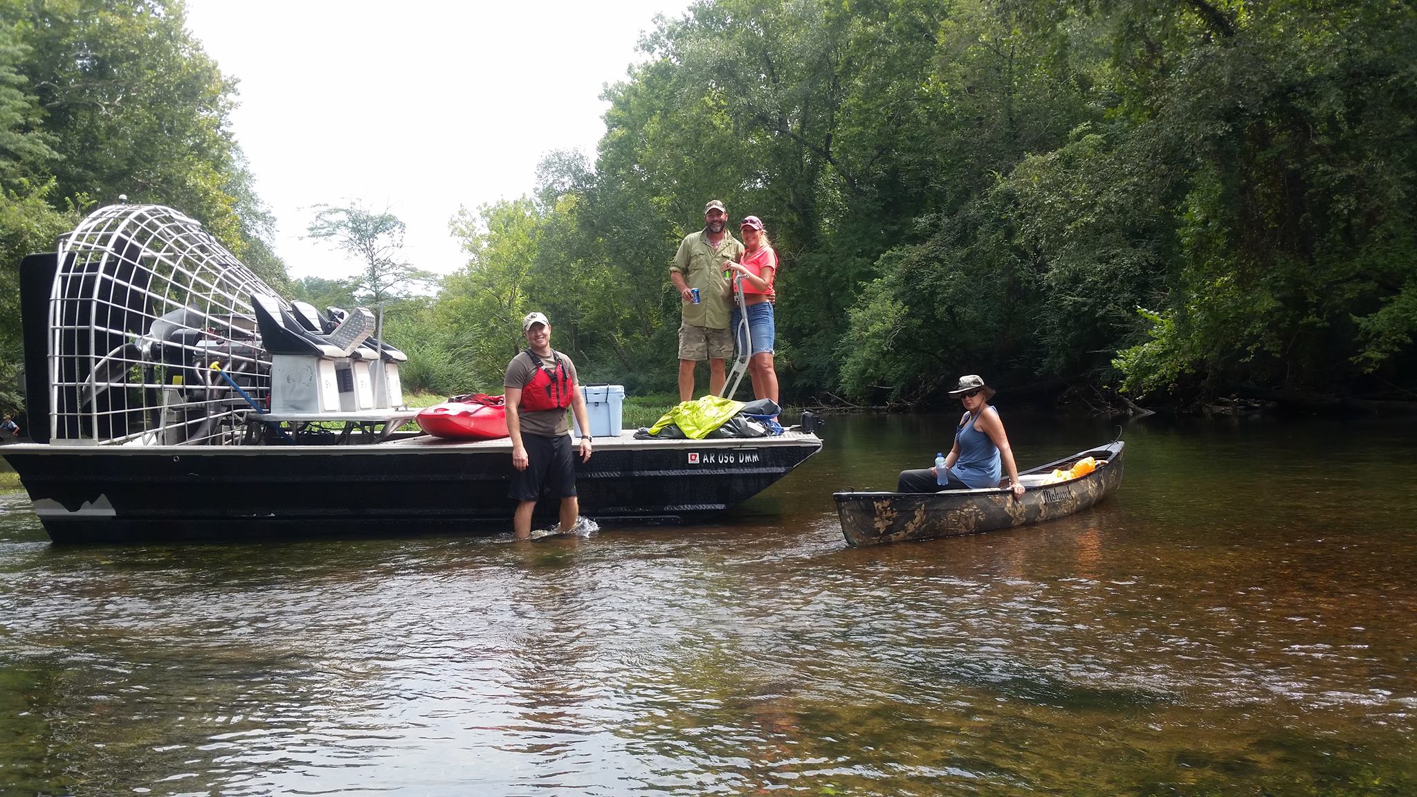 Bryan H is bring his airboat to serve as a trash barge. You will be able to off load frequently so that we can keep getting more. AND, when we get down to the confluence with the Ouachita, don't worry about the 6 mile paddle out. We'll be turning the air boat into a "ferry" to carry the other boats downriver to the boat ramp at Arkadelphia. (can you say "woo-hoo!")