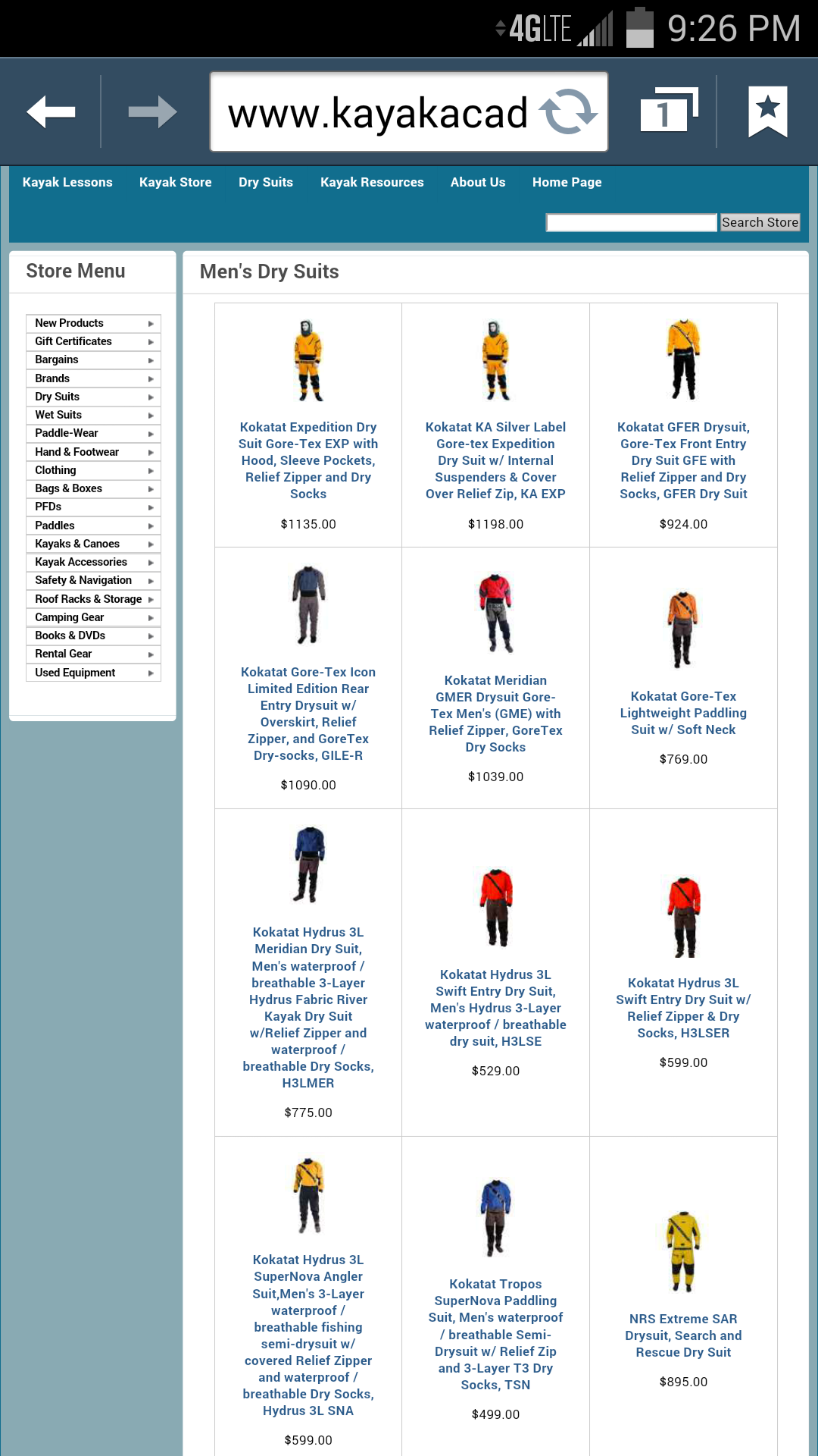 The screen shot is from Kayak Academy. I picked up the Tropos paddling suit before the holidays for 429 bucks, and love it. It only has a 2 year warranty, but it's a Kokatat, so they will fix it forever after that, on me. In 2 years, I'll get a gortex one and have this one for a backup if I ever have to send in the new one for repair. There are a lot of ways to get into winter boating without spending a thousand dollars, unless you really want to. This is my first drysuit, and I will never be without one again.-M-