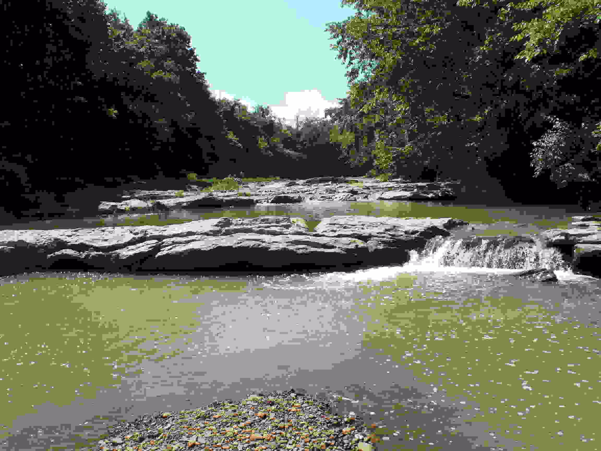 Definitely too low today, probably OK yesterday. I got some pics and will post to Facebook, but here's a shot of the ledges right above the takeout bridge on Orr Road.
