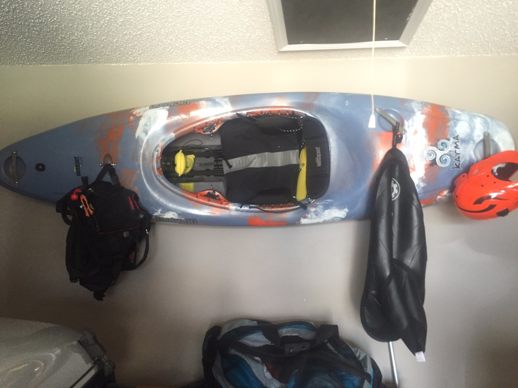 I'm posting this for a buddy. It's a medium jackson karma. Normal river wear. No oil canning or deep gouges. Garage kept. Great boat for beginners or the advanced. Asking $700 OOO.