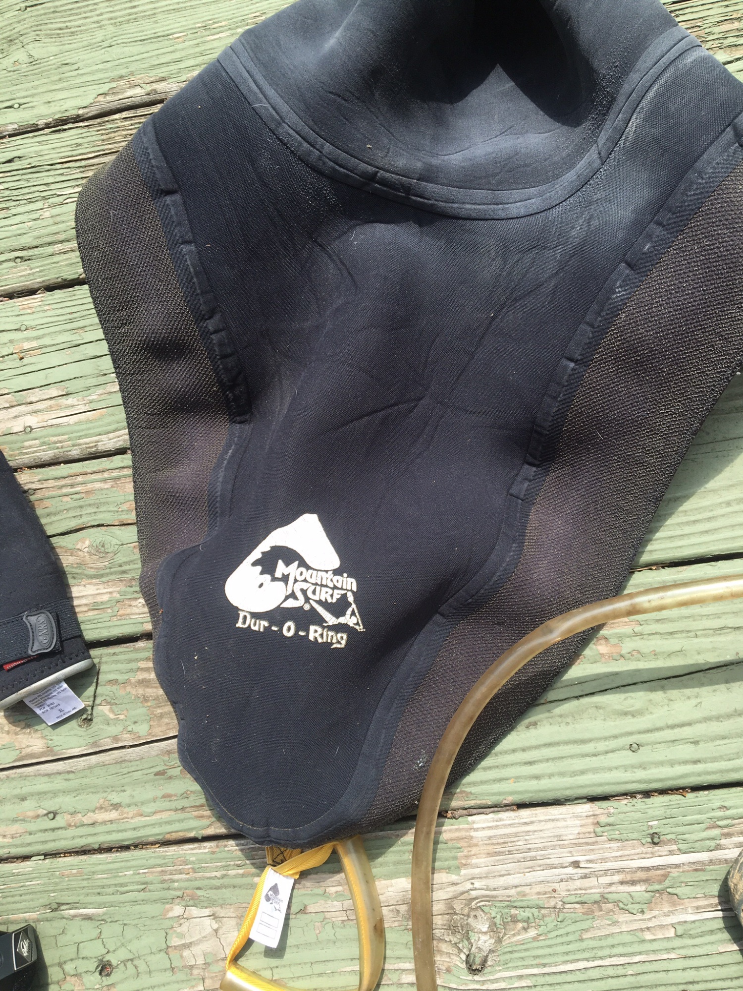 Mountain surf dur-o-ring skirt - $30. No size is listed on the skirt, but I can confidentally say the tunnel is a size small. Probably a medium size cockpit. Perfect for a kid's skirt or small adult, depending on cockpit size.