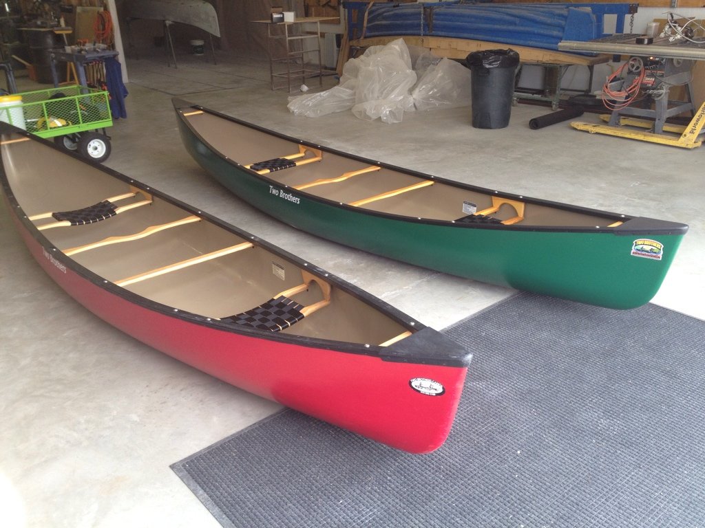 Two Brothers Canoe is back in production of the Arkota in T-Formex. Its a 16' maneuverability oriented river canoe. We have green and red T-Formex boats available. The boats are outfitted with all ash wood components. We put nice arched drop hangers with the web seats.