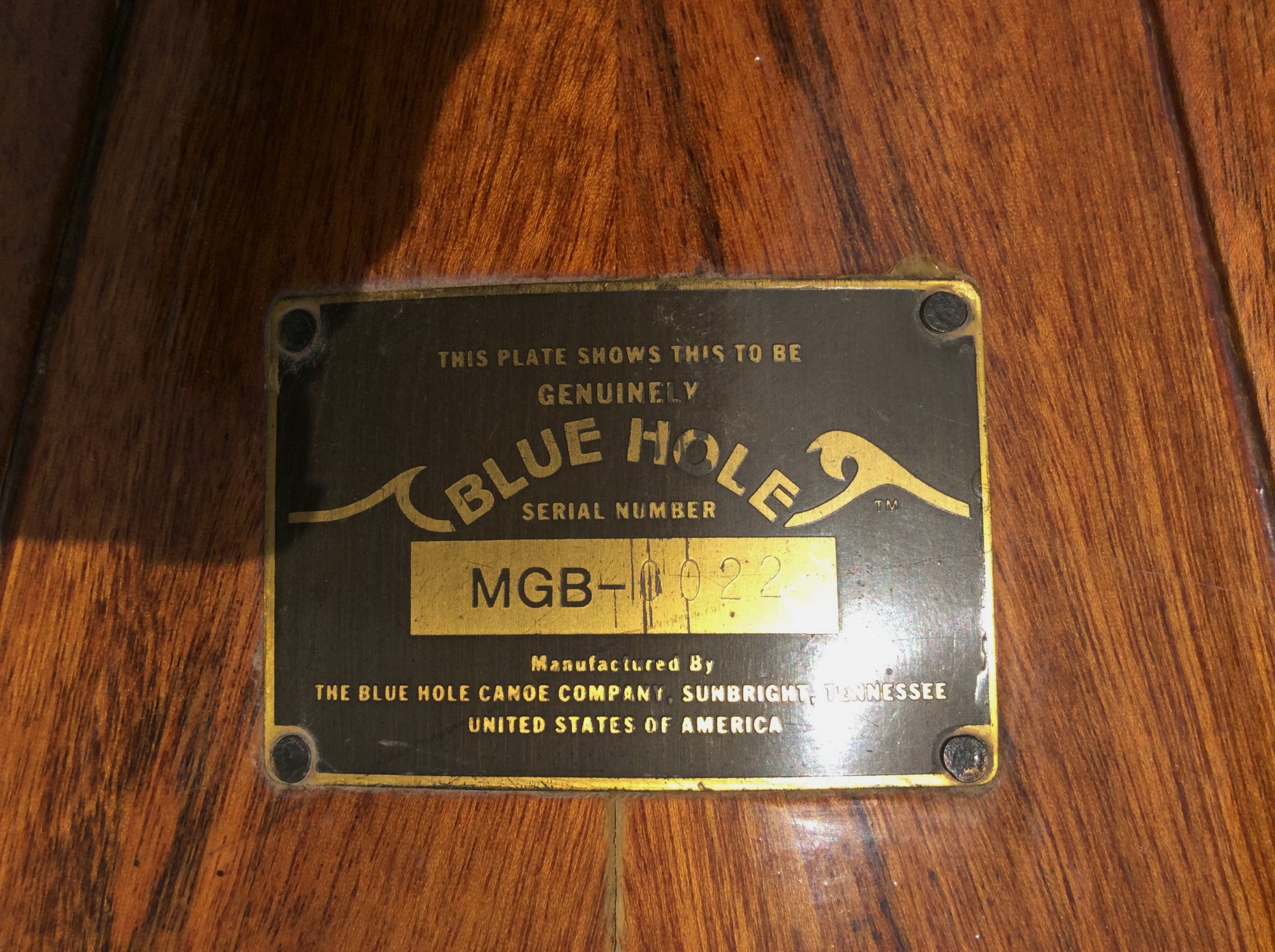 Re: 17 1/2 foot Blue Hole Canoe, serial # MGB 0022 $800