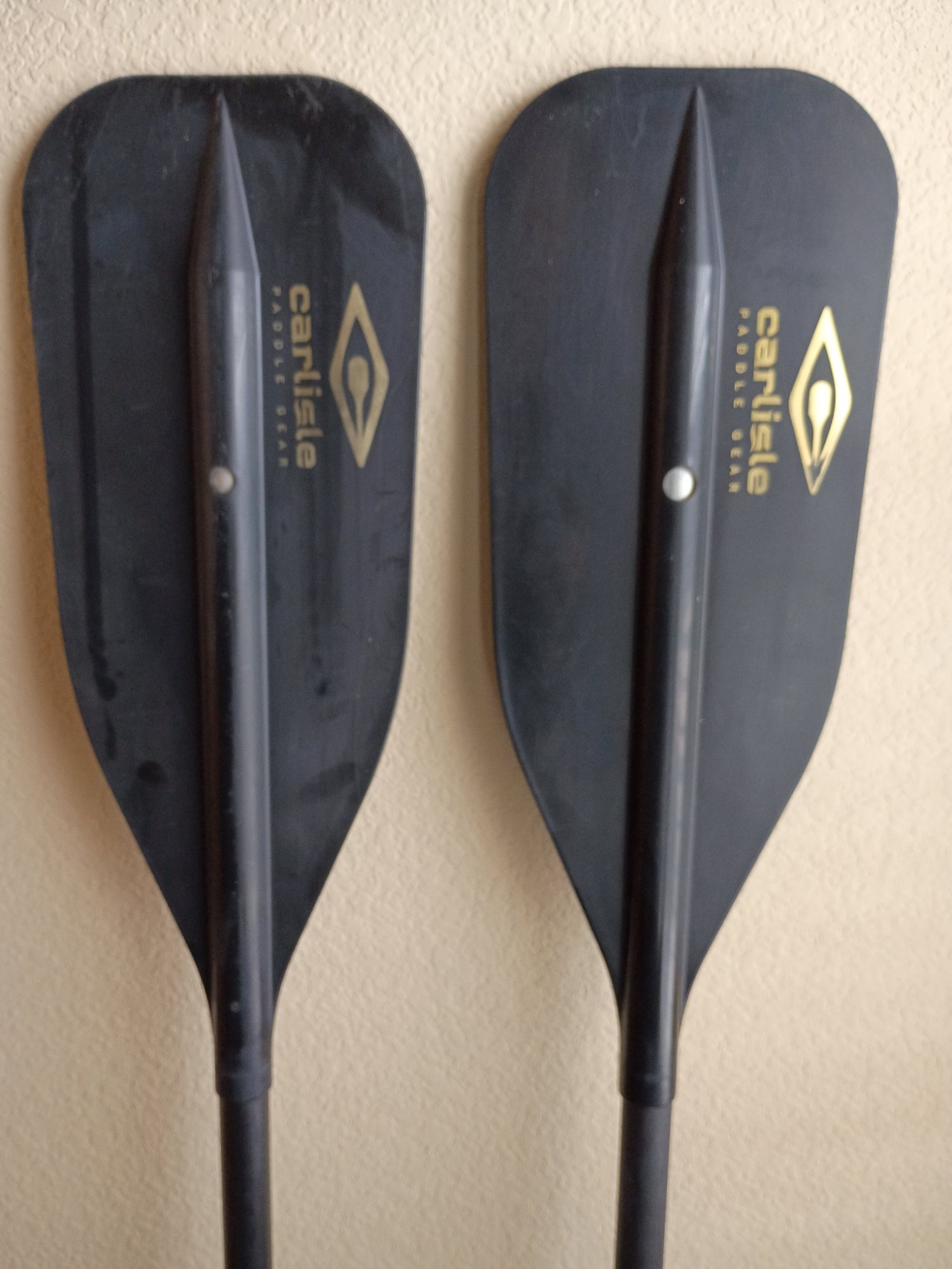 Two 57" Carlisle aluminum shaft/plastic blade canoe paddles. One is unused, the other used once.
