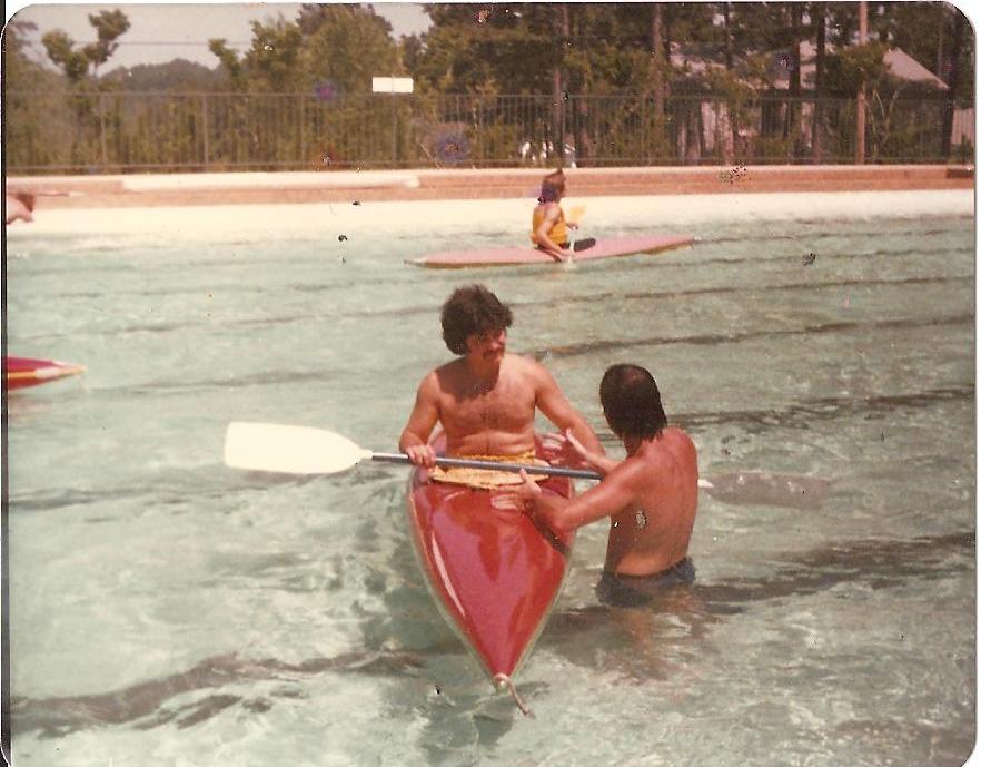 The top photo is at the Little Rock Tennis Center in the summer of 1978. d*ck Held Kayaks sponsored a roll session and I was being instructed by John Fergason. I did roll the boat in that session, but didn't get back in a kayak until the following year, after which I swam all across this great land of ours before acquiring a reliable roll.