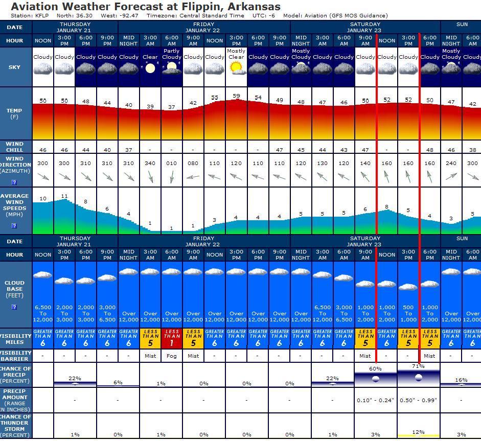 Here is where we stand. I got with Rodger and he and I agree that this is not an ideal weekend. Having said that, I looked to see what the difference was between the forecast west and east. These are for Rogers and Flippin. You will note that the farther west you go the less rain but more wind you have. I can deal with 8mph wind - 18 becomes unpleasant. The temps are close to the same but the rain will be greater as you go east. Thats what happened last night. Hwy 14 got a lot more rain than Ponca. If we opt for the upper (west) end, I suggest base camping at Ozark and paddle in the area. If we opt for the lower (east) end then we could gravel bar camp but we have a good chance of watching the river rise. How far is anyones guess.