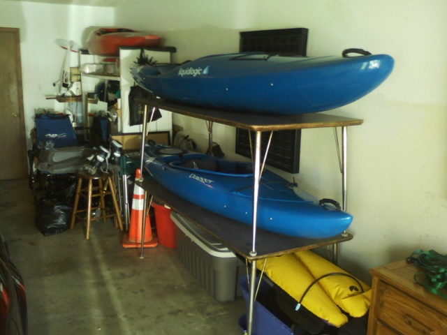 He wastes no time in burtsting my bubble.... "John," he says. "You cant do that buddy, you're going to oil can that nice new (to me) yak of yours, it's not good for it." So I immeadiatly take down the ammo and set it on it's nose on the other side of the garage next to my wife's storage wardrobe and her stored girly things, (a sad place for the resolute Pyranha Ammo...) Of course the Response had to stay "hung" b/c it is ten feet long and cannot stand on end in the garage.