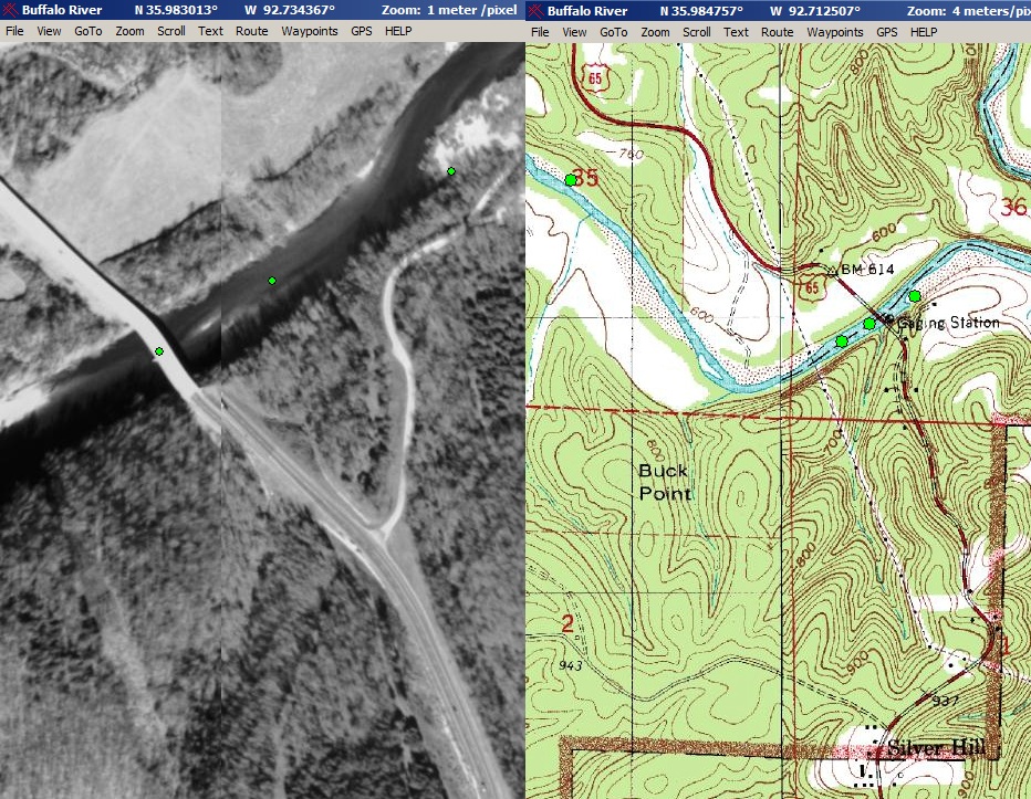 If you are refering to Garmin MapSource Streets and Trips you are looking at some VERY old data (in tech years). Garmin switched from Streets and Trips to the Navigator series around 2005 and I know with certainty that they updated the US65 bridge and the re-routing of the road north of the river in the 2010.3 map update sometime last spring or summer.Richard wrote:Here is a comparison of MS Streets & Trips, Google Earth and USAPhotoMaps at their highest resolution. This is Hwy 65 crossing the Buffalo.