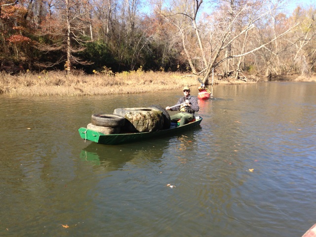 Steve Gabbard - Knew who to call, and called them, got us permission to bring anything we pull out of the Saline River in Benton to the city landfill FOR NO CHARGE. Wore the drysuit, went after the "deep" tires, and let us use his truck to carry out a really NASTY load of furniture that had been dumped near the take-out. Provided an overnight storage place for everything and helped with unloading the next day. Helped me run the motorboat over the low head dam. (YES, we took it all the way downstream to the take-out near I-30.)