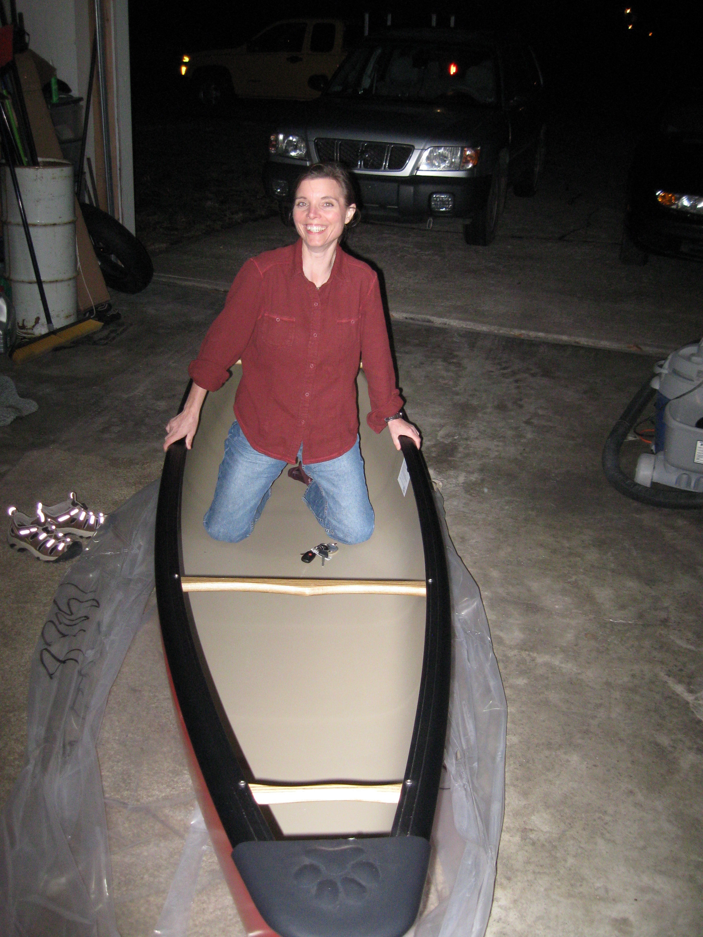 The icing on the cake was being able to travel to and from with Stephanie and Gary. I could not have found any better traveling companions. The whole trip was incredible. The special pieces in the icing were the tours through the Bell and Wenonah plants and to watch as Steph's Bell Prodigy was loaded on her car.[attachment=1]IMG_2335.JPG[/attachment] And . . . to see her step in for the first time just moments after she got it home.[attachment=0]IMG_2368.JPG[/attachment]