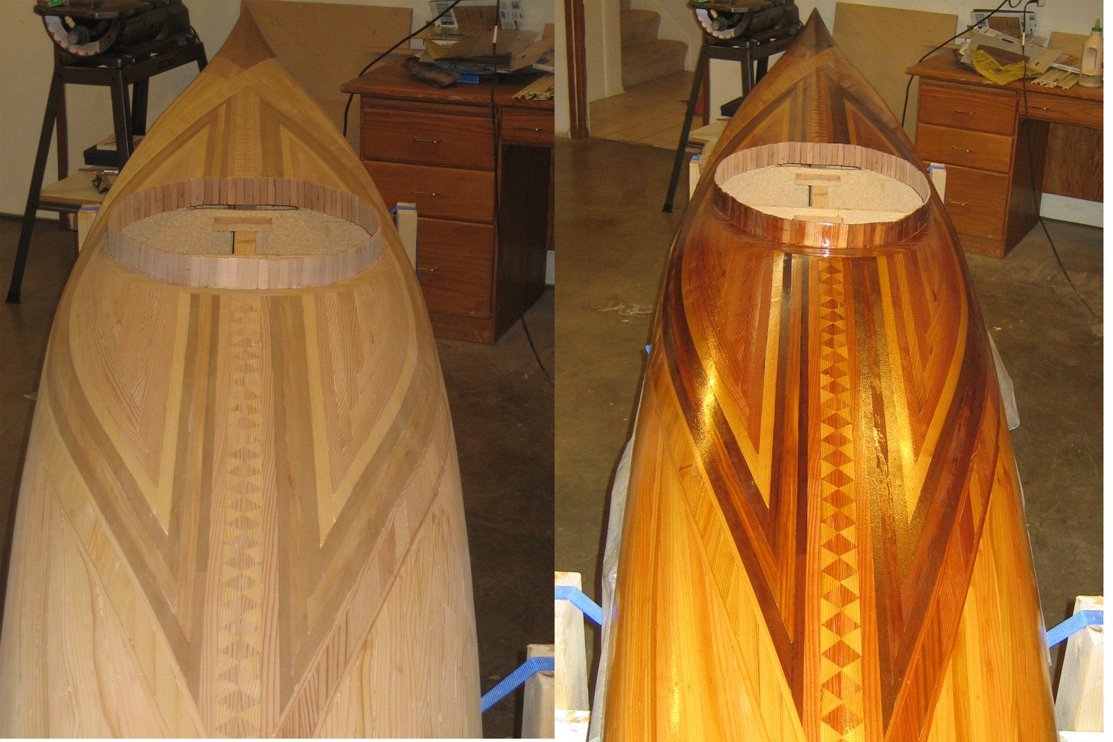 here are a few pics of a sea kayak a good friend of mine built. Its pretty awesome. The amount of hours he has in it are insane.