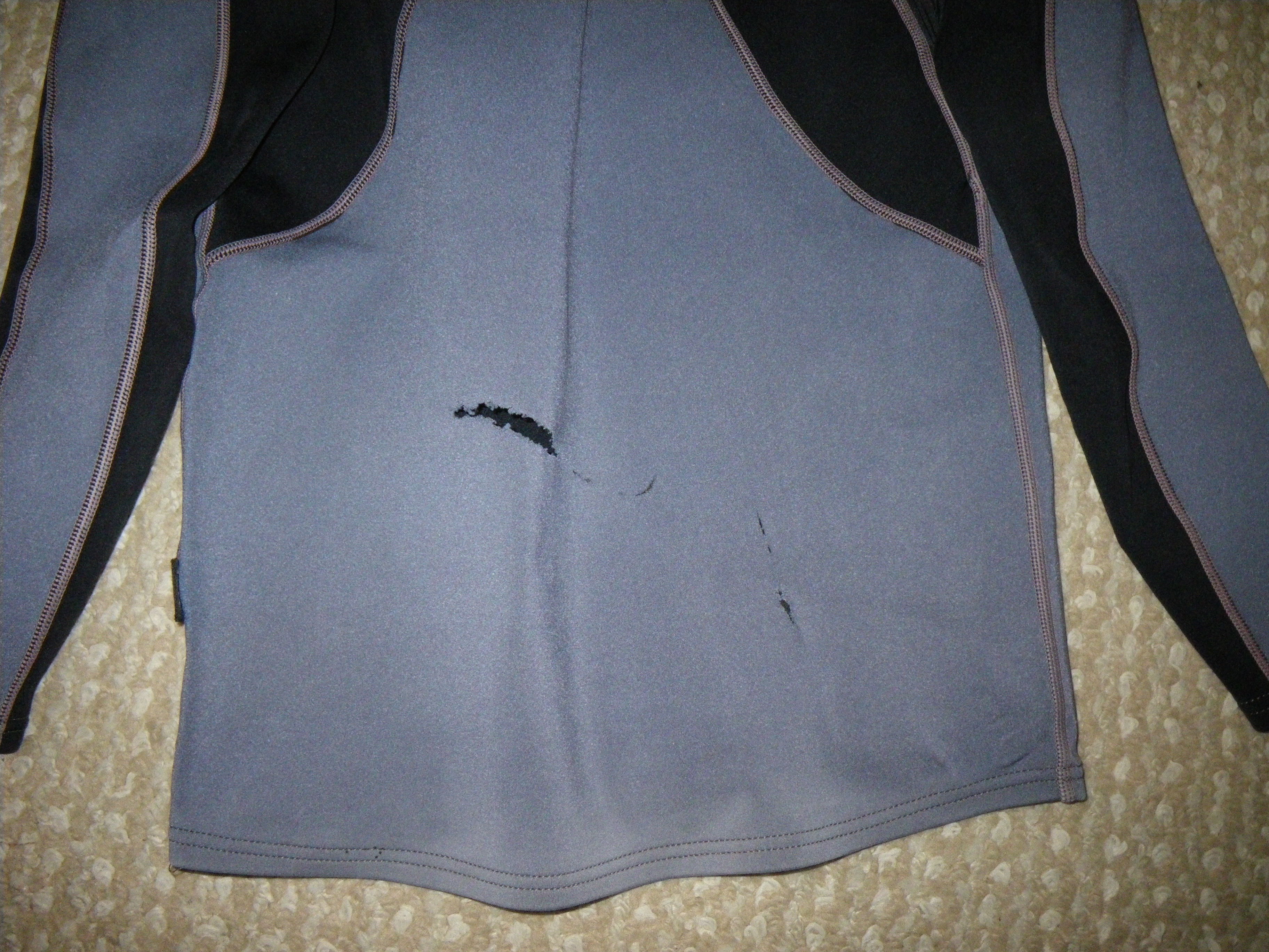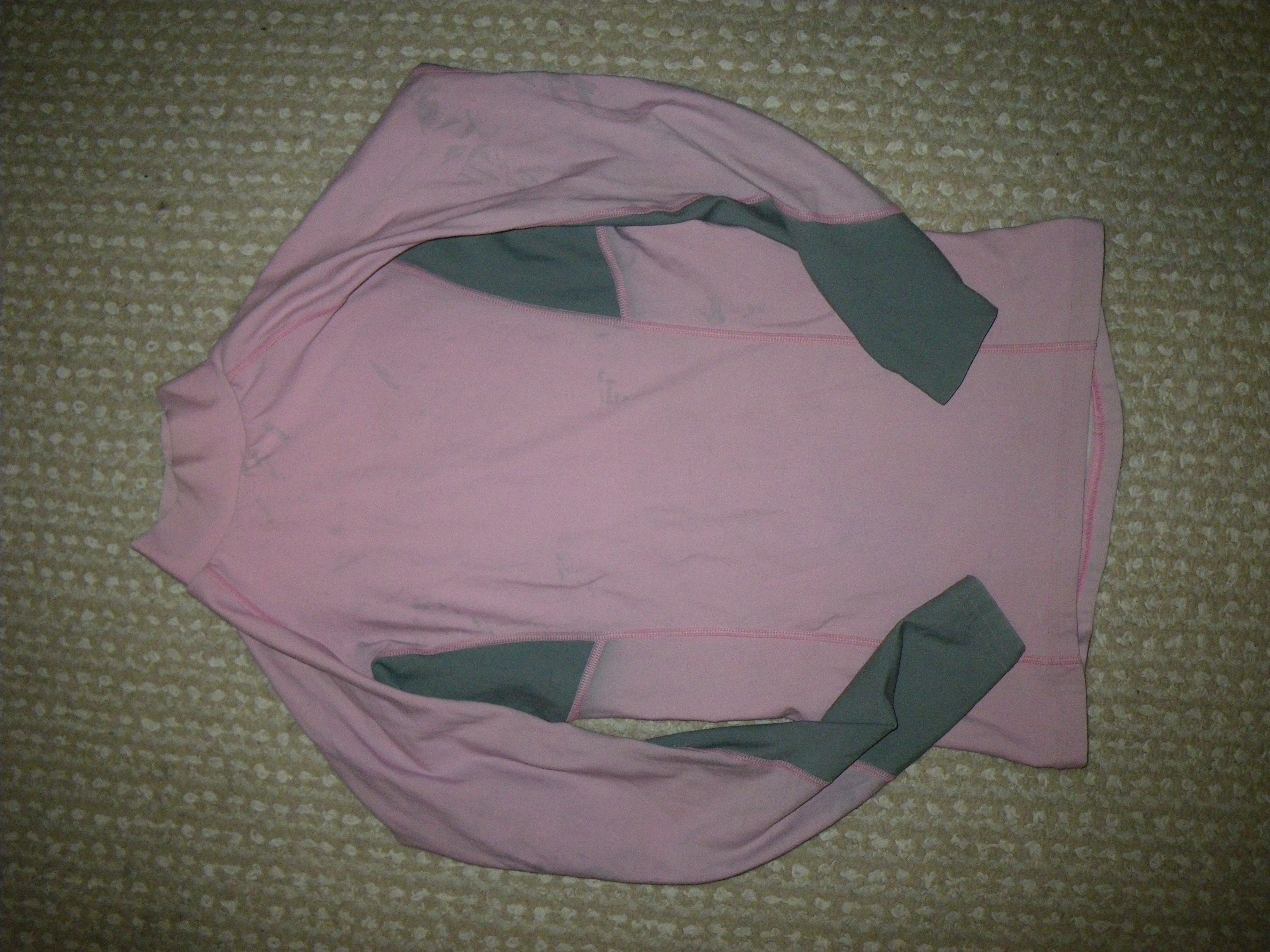 Immersion Research, thin skin, long sleeve, used, some discoloration, pulled threads, pink/gray, Size medium, $12
