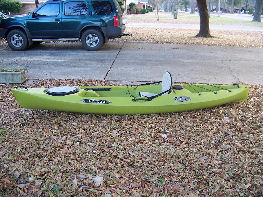 Selling an almost 4 year old Heritage Redfish 12. Boat was purchased new by me at O.O.O. Color is green. Boat is in very good condition. Has slight oil canning but that is not really an issue with this type of boat. Awesome fishing platform. Can carry you and a lot of gear. Have added paddle keeper bungees and hooks on both sides. SUPER comfortable seat. $400