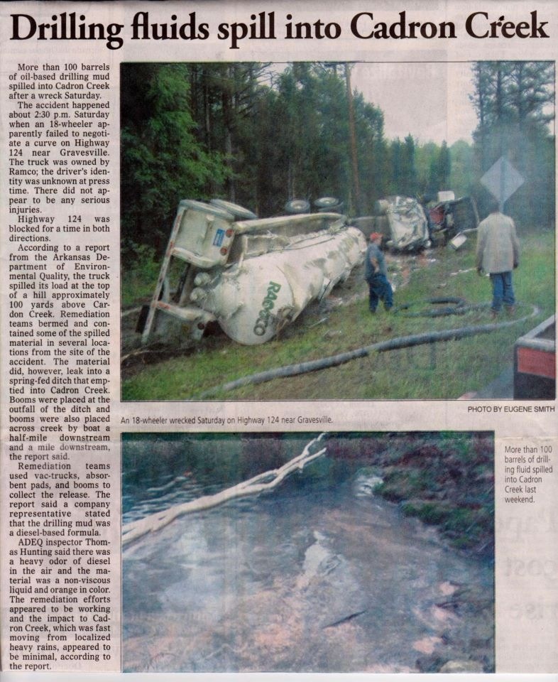 I did some exploring today. The place where the truck turned over is downstream of the HWY 65 bridge, so I don't know why there would be a boom there unless it was just a mistake. Just eyeing the water at Hwy 285, it looks fine. ADEQ says it was cleaned up and not much got in the creek. I will let you know if I find out more.