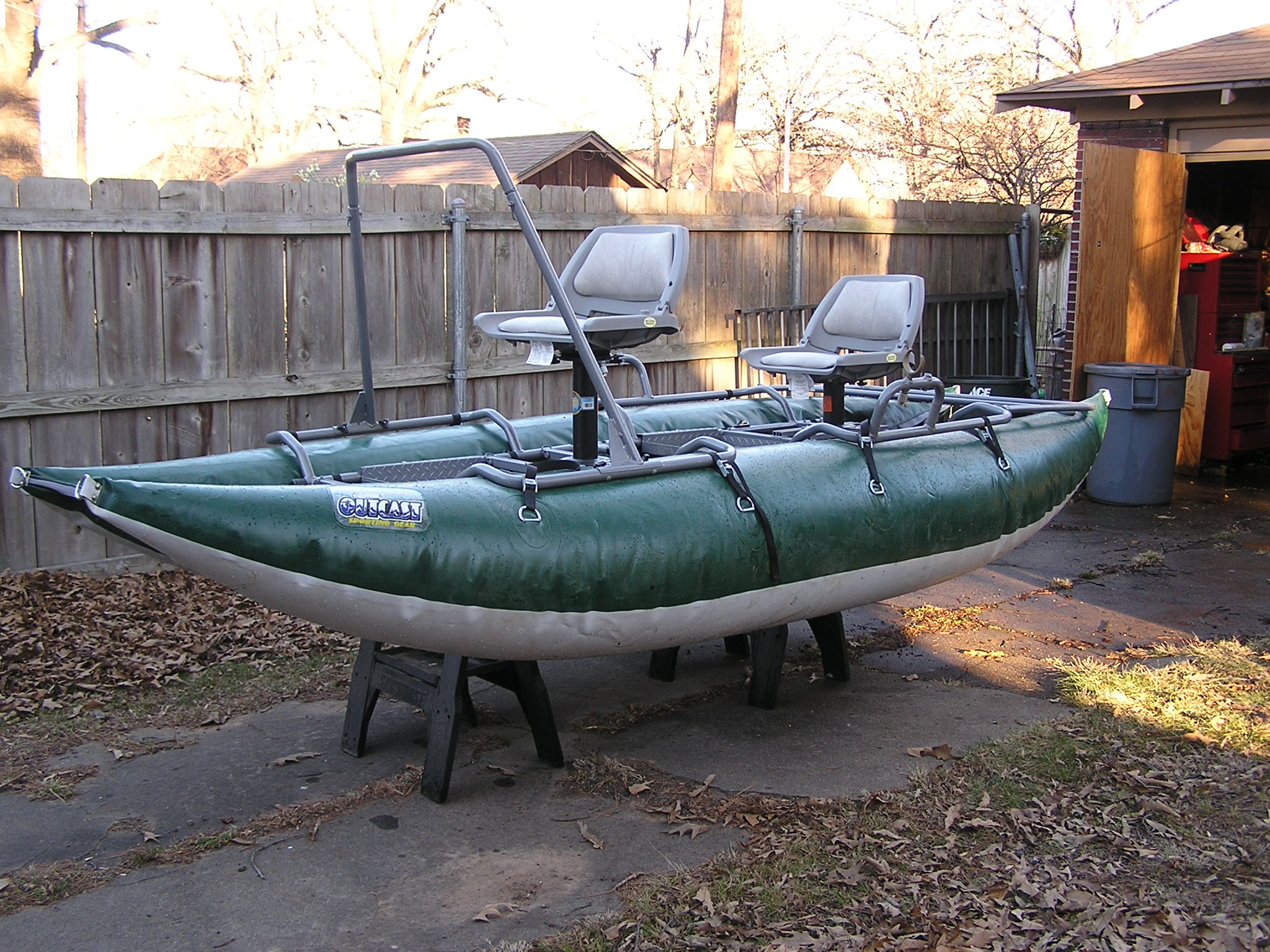 Outcast Pro Series PAC1200 Pontoon boat. This inflatable 12' driftboat has been in the water one time.
