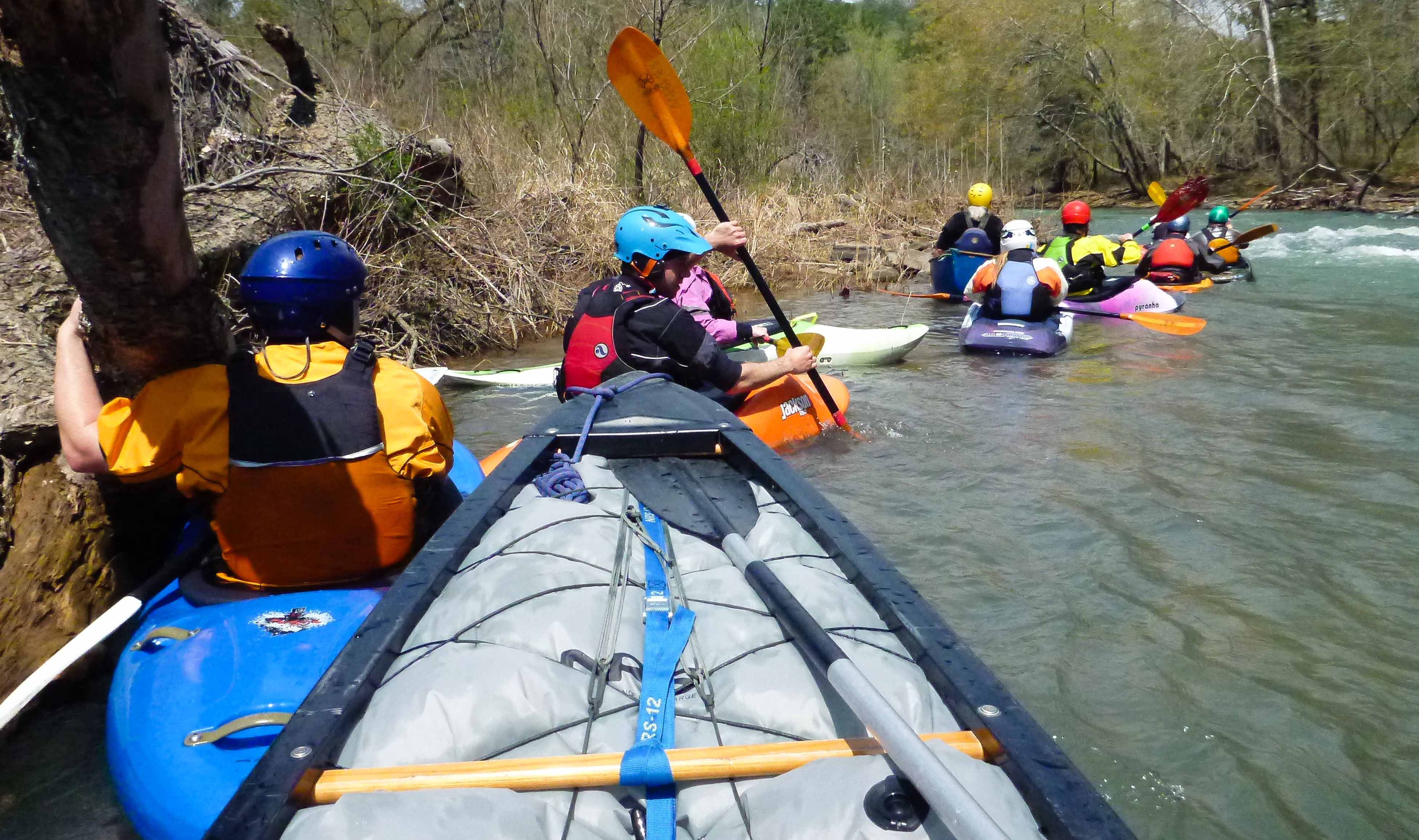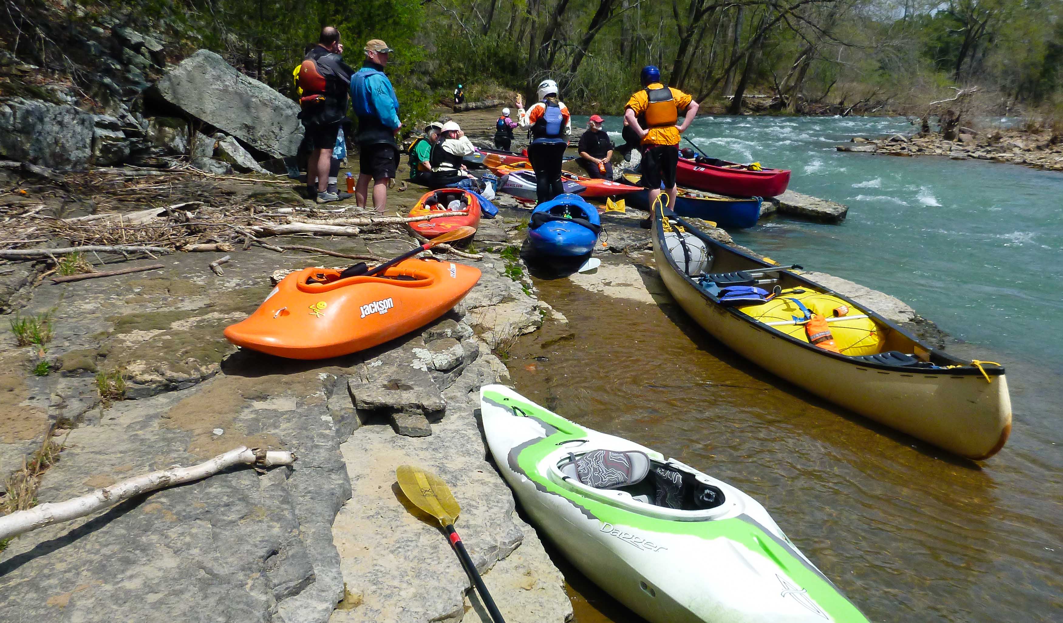 Ok so this trip was never posted before hand because we already had a full crew by Wednesday. In all there were 13 boats and 14 paddlers. Level was great around 2.75', and the weather was much better then the prediction; high 70s with plenty of sunshine. It was spring paddling at its finest with a lot of voluntary swims (and some not so voluntary) to cool off. The crew was a great mix of advanced paddlers and newcomers, with several personal first descents.