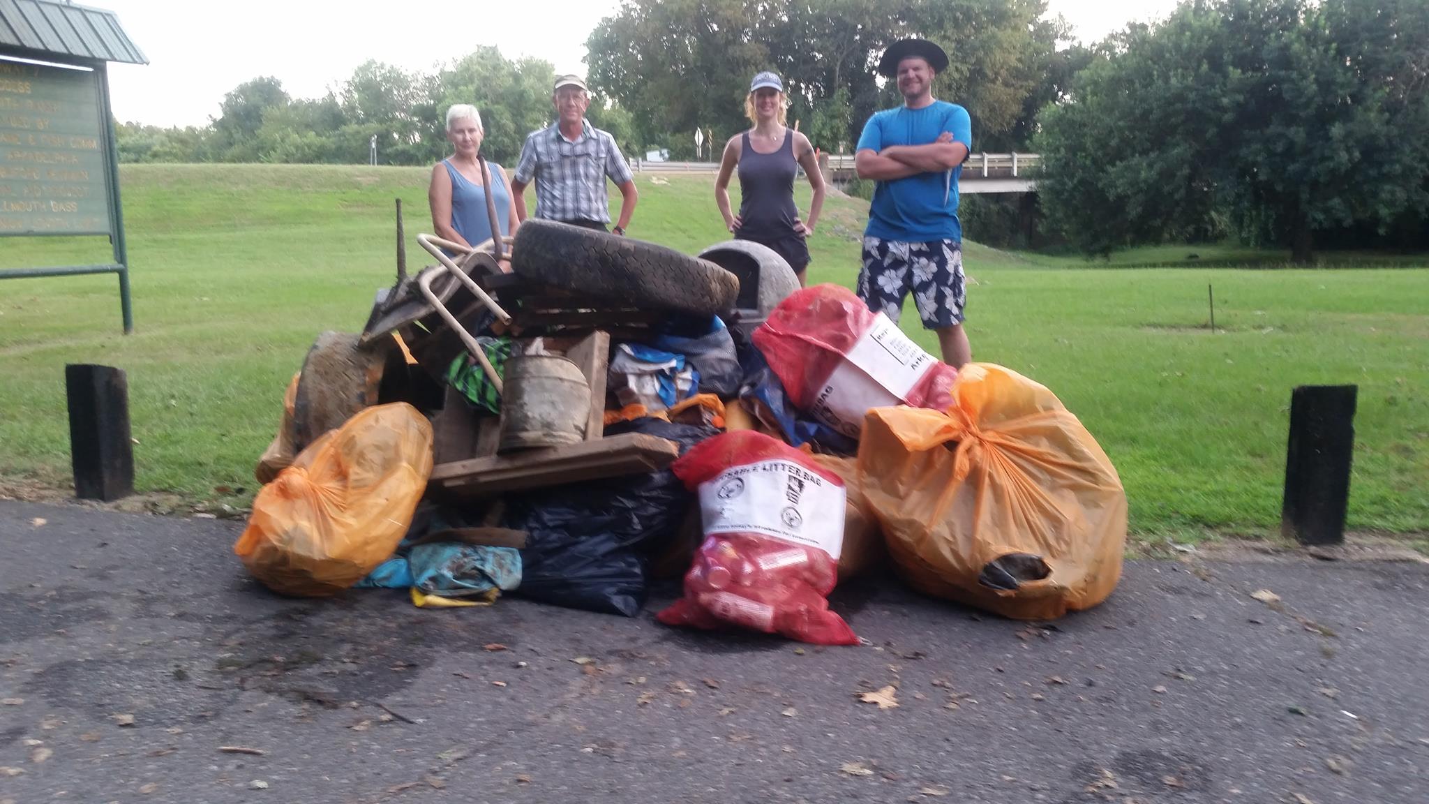 We'll try to keep the water time under 4 hours, possibly less. We're only trying to go down a 2.6 mile stretch of river. So on one hand, it is possible we could be on the water less than 3 hours, plus an hour at each end for shuttling, loading/unloading boats and trash, etc. So I think at 4 PM we'll be all loaded up and talking about whether to eat supper together at the BBQ place in Caddo Valley, or just head to the house. The more people we get, the more likely we can get a lot of trash with only a couple of hours of work, and maintain or beat this schedule.