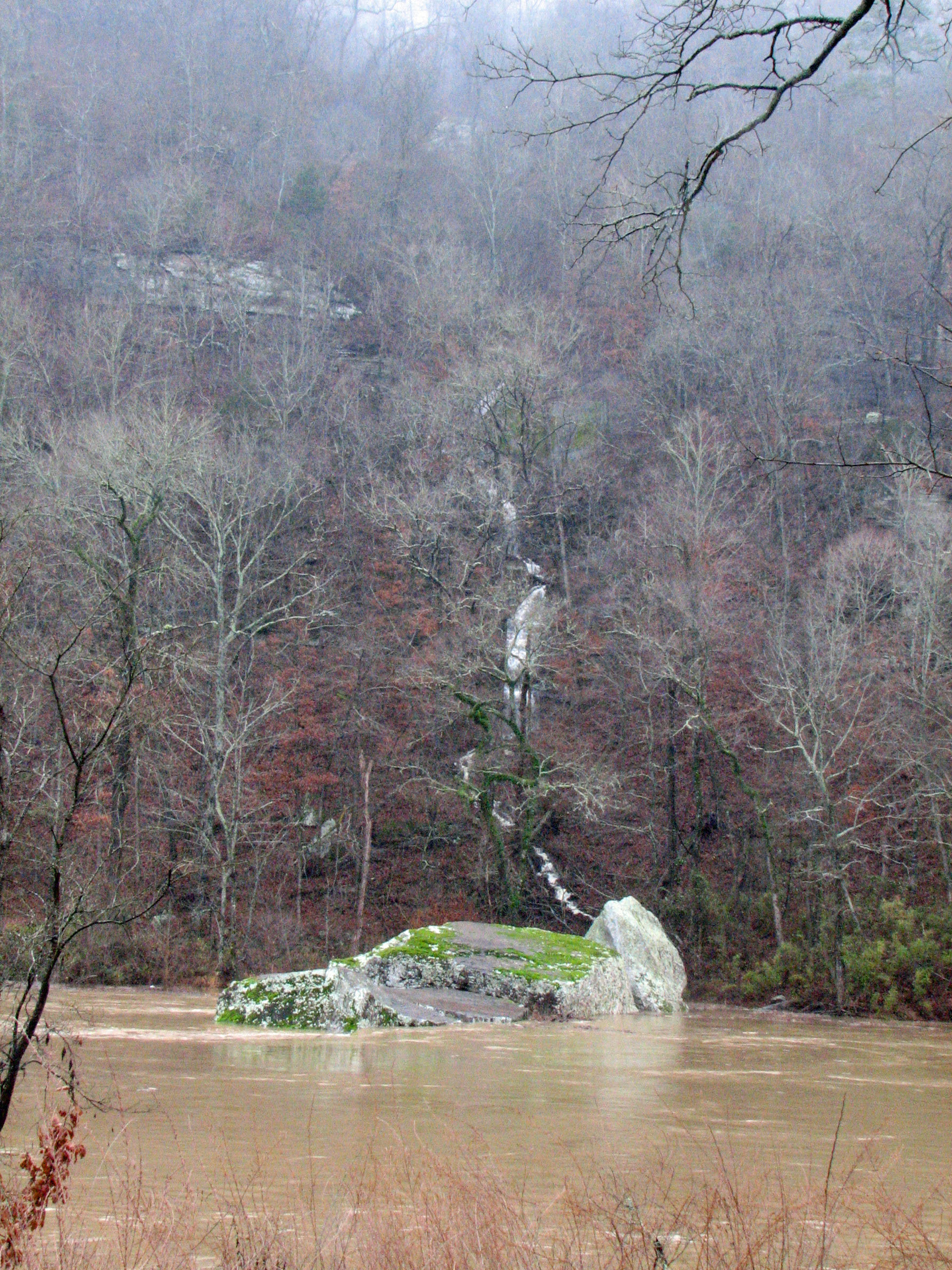 This is how Big Piney looked at 10AM Saturday. It wouldn't have been a very long jump off the rocks! Walter