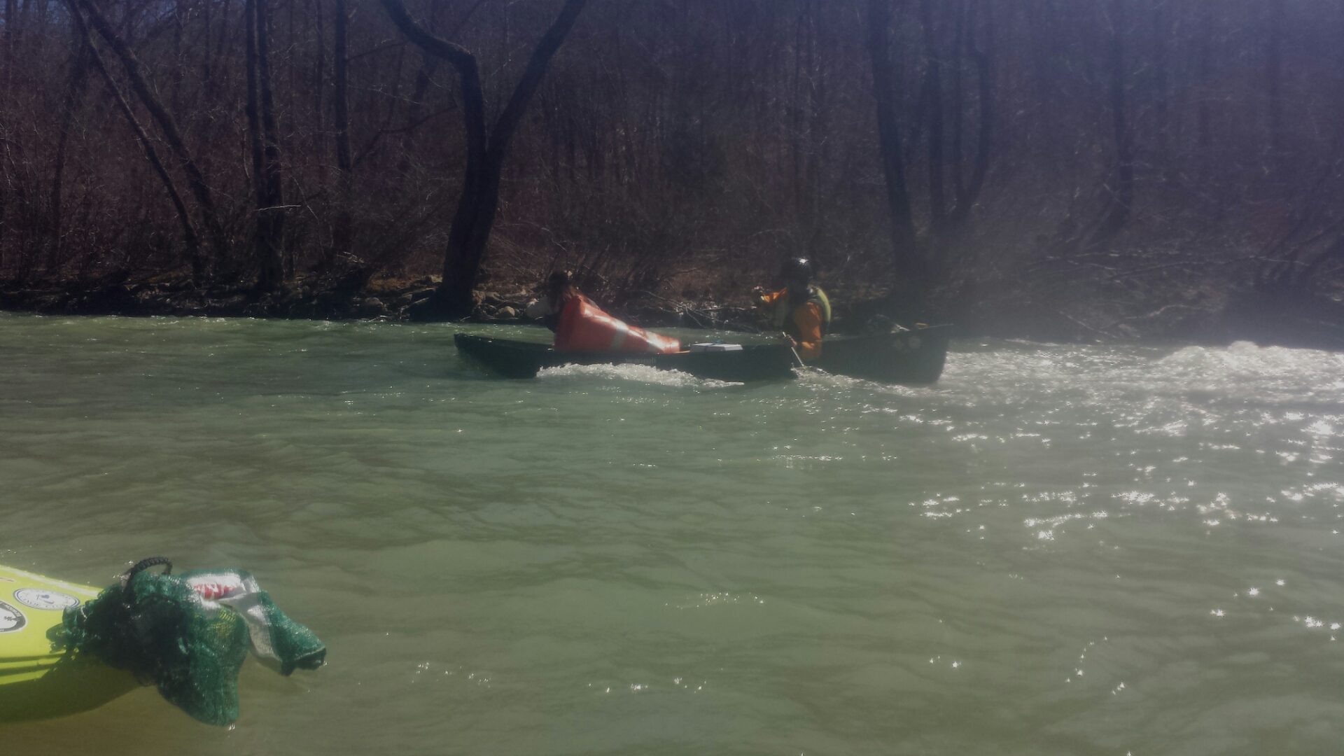 We are going to cover Wolf Pen to Indian Creek (upper) and may stage trash at a few access points if need be. Liz and I will be in our battle barge (tripping canoe). Should have some kayakers bouncing around to shore grabbing trash and bringing it back to the barge for transport downriver.