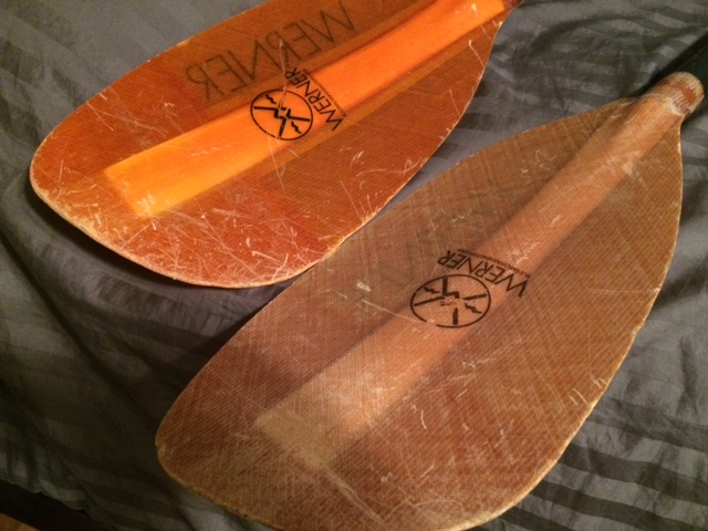Paddle - Werner player 76" offset slightly (not sure of deg) (picture shows two, but only one comes with this boat)