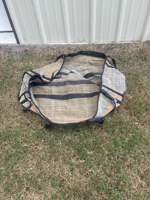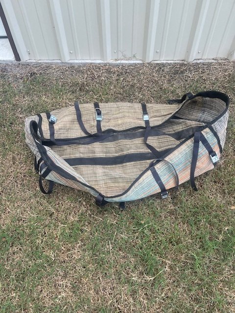 Mesh raft drop bag that hangs from frame, approximately 36 x 21 x 16 deep. $60 Pick up in Fort Smith/Lavaca area.