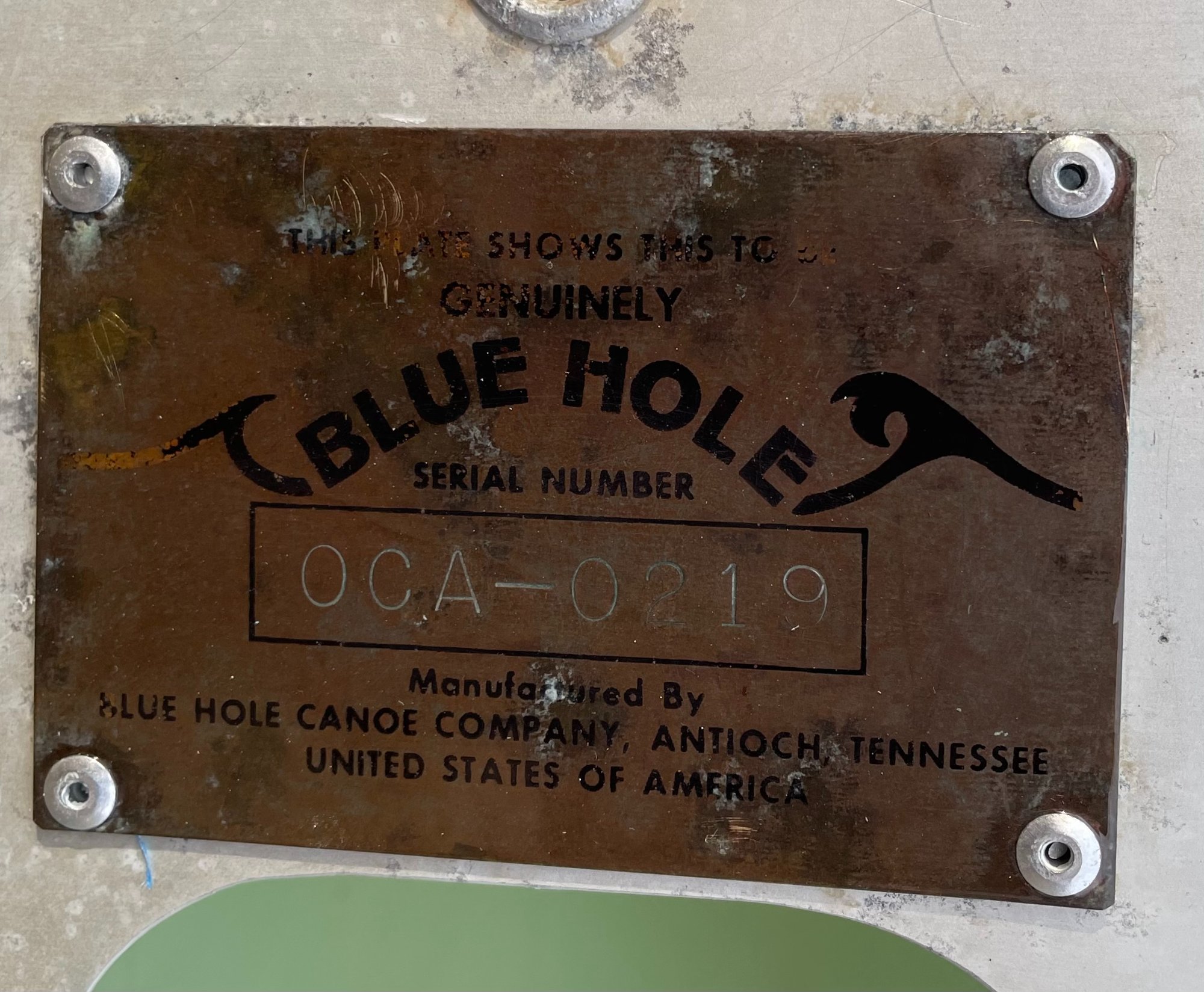 This is a very rare and unique blue hole canoe. Early model production #219th canoe made in Antioch, TN in 1973 before they moved the factory to Sunbright. This is a true survivor canoe with professionally installed color matched kevlar skid guards on both ends, custom decals reflecting "Made in Antioch, Tennessee", original brass serial plate as well as a custom aluminum plate reflecting same "Made in Antioch, Tennessee". All original seats as well as vinyl guards on the deck plates. This is a very cool canoe that will get many double takes going downriver! Take a look at the photos, they tell the story of what great condition this boat is in.