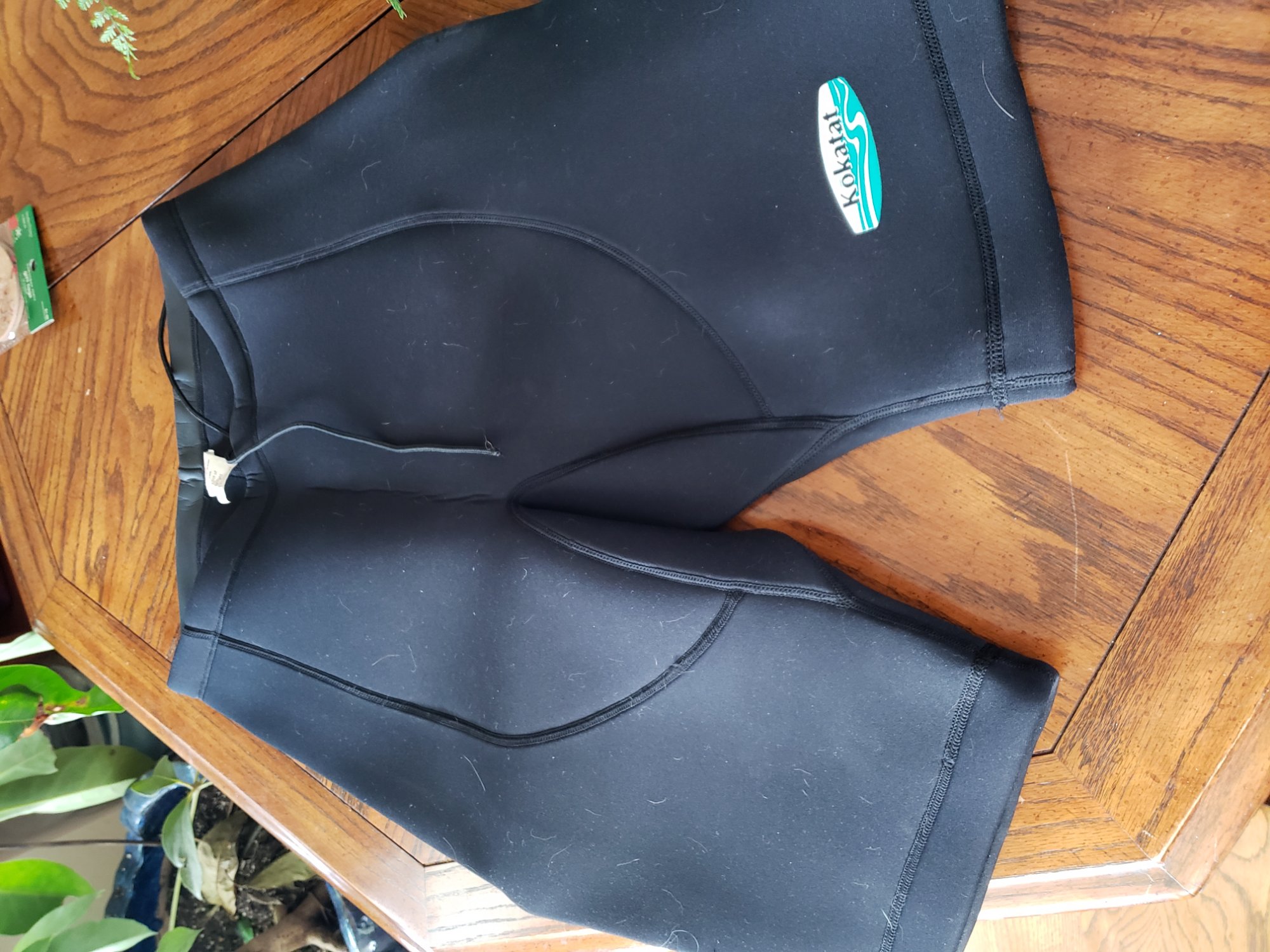 The neoprene shorts are in excellent condition. These are size large but I wore a size 7 and these were perfect when on a cold creek on a hot day. Please text 501-352-8282